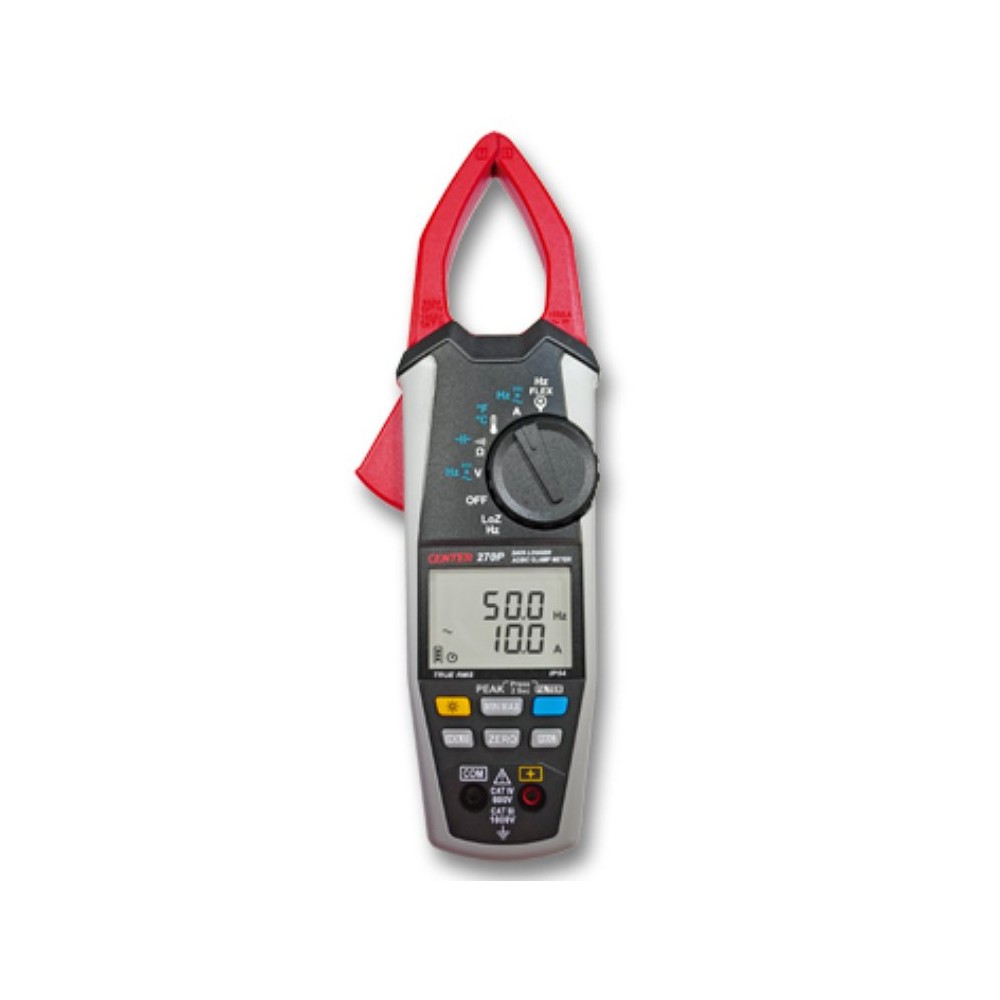 El C-270P es una pinza amperimétrica profesional con registro de datos diseñada para trabajos de medición eléctrica avanzada, mantenimiento industrial y diagnóstico en instalaciones de potencia. Incorpora medición True RMS con doble pantalla, funciones AC+DC, registro interno de hasta 16.000 lecturas y modos Min/Max/Peak, permitiendo un análisis preciso y continuo de parámetros eléctricos. Además, cuenta con filtro paso bajo, protección IP54 para uso en campo y compatibilidad con sondas flexibles opcionales, facilitando mediciones en espacios reducidos y entornos exigentes.